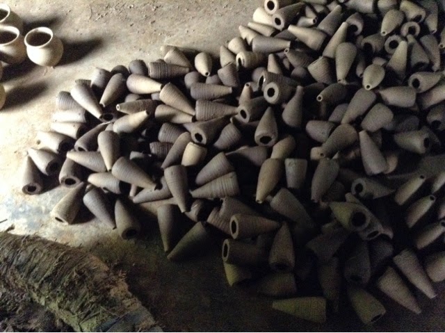 After it has dried, they cover it in a great mound of hay and fire it. I took a picture of it, but decided not to post it. It looks like... a big mound of hay. The finished stuff, after firing...